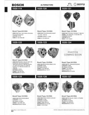 Bosch Type,24V/45A Bosch Type, 12V/45A Bosch Type, 12V/50A Bosch Type,24V/55A MARINE APPLICATIONS NOTE: HAS HC-Parts:CA2271R. CA7491R