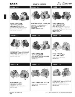 with 6.1 L & 7.0L & Manual Transmissions 12V/1.5KW,CW,9T 12V/1.5KW,CW,9T 12V/1.5KW,CW, 1 OT FORD PMGRType , 12V,CW,10T 12V/1.5KW,CW,10T