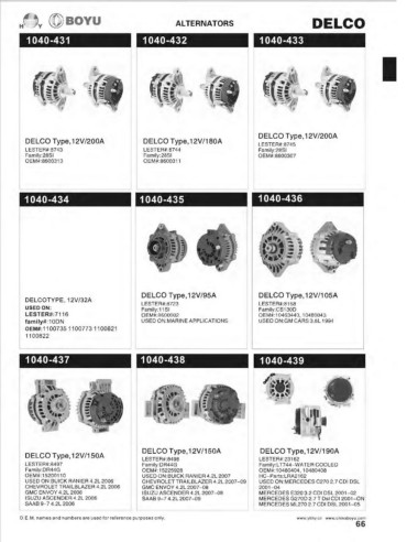 DELCO Type, 12V/1 OOA DELCO Type, 12V/80A DELCO Type, 12V/80A DELCO Type, 12V/95A DELCO Type, 12V/105A
