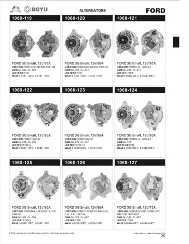 USED ON:FORD TRUCKS 1990-91 USED ON:FORD 3.0L 1992-94 USED ON: FORD 1990 FORD 3G Small, 12V/95A FORD 3G Small, 12V/95A FORD 3G Small, 12V/75A