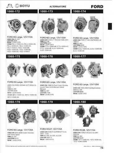 FORD 6G Small, 12V/110A FORD 6G Small, 12V/110A FORD 6G Small, 12V/110A USED ON FORD CROWN VICTORIA4.6L USED ON:1998-0 n Ford Crown Victoria, FORD 6G Large, 12V/135A