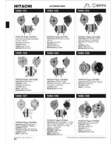 HITACHI Type, 14V/125A            HITACHI Type,12V/50A              HITACHI Type, 12V/50A                       1990-94 5-GROOVE PULLEY,         HITACHI Type, 12V/80A            TRUCKS 2001-98 Isu zu TRUCKS